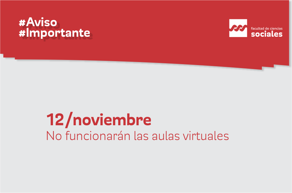 Desde el Área Tecnología Educativa y Conocimiento Abierto de la FCS se informa que por actualización técnica de la plataforma de aulas virtuales el lunes 12 de noviembre de 2018 de 14 a 19 hs no estarán accesibles por ese período.