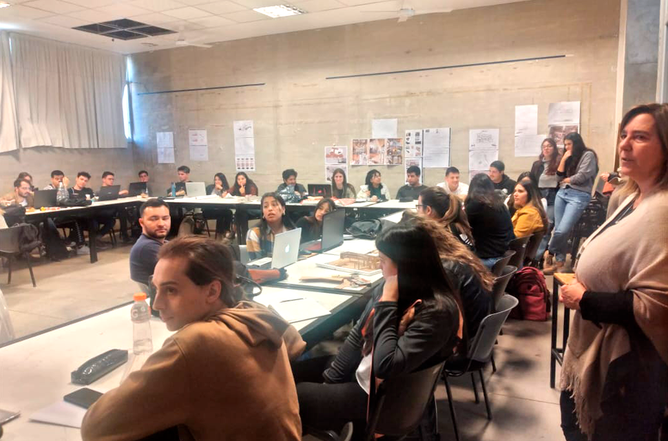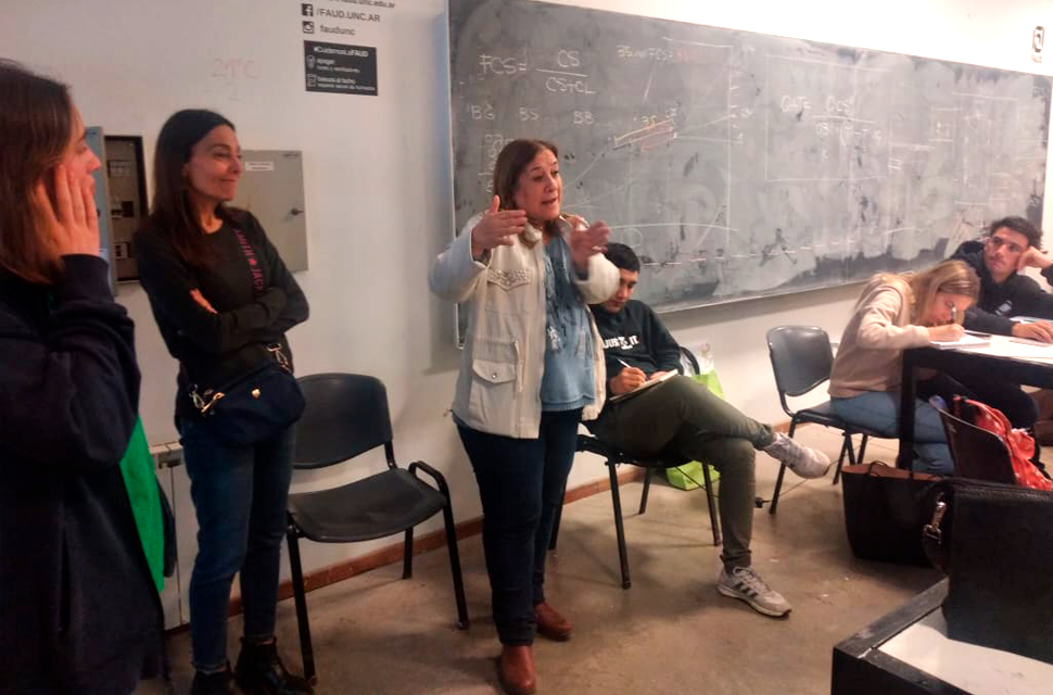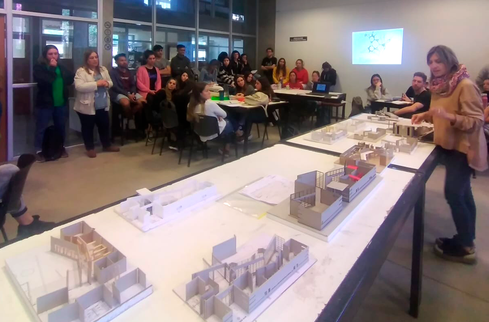En el marco del concurso de ideas para la Biblioteca Víctor Guzmán y sala complementaria que se lleva adelante con la Facultad de Arquitectura Urbanismo y Diseño de la UNC, la vicedecana de la Facultad de Ciencias Sociales, Jaschele Burijovich, la Subsecretaria Académica Eliana López y la consejera estudiantil Julieta Pilatti, visitaron los talleres de la Cátedra Equipamiento B para conversar con los/as estudiantes que están elaborando sus proyectos.