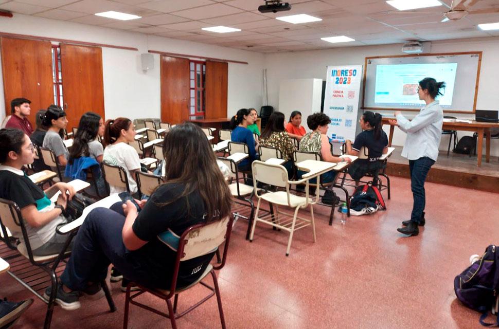 Los encuentros que se desarrollan en el Aula Paola Sosa y de manera virtual (en modalidad híbrida) permiten abordar las prácticas de lectura y de escritura en el nivel superior a partir de actividades exploratorias, indagación de saberes previos, intercambio con los pares y las docentes a partir de textos seleccionados por las cátedras que conforman el ingreso de las tres carreras de la Facultad de Ciencias Sociales. Además, en el aula virtual Ambientar Sociales hay una serie de recursos destinados a ampliar y profundizar lo trabajado en cada taller presencial.