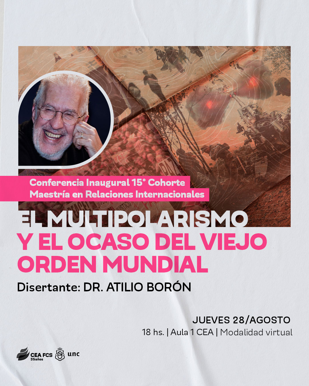 En el marco de la apertura de la 15° Cohorte de la Maestría en Relaciones Internacionales del Centro de Estudios Avanzados de la FCS, la carrera de posgrado invita a