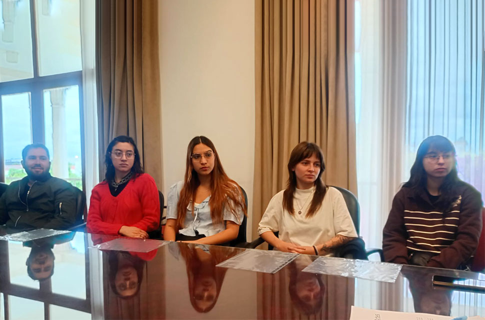 El mediodía del lunes 27 de octubre se realizó en la sala de reuniones del Vicerrectorado de la UNC un acto de reconocimiento a la abanderada y escoltas de la Facultad de Ciencias Sociales (FCS). La actividad formó parte de una serie de encuentros impulsados por el Vicerrectorado con estudiantes de todas las unidades académicas, como modo de destacar su compromiso académico y su recorrido en la universidad pública.