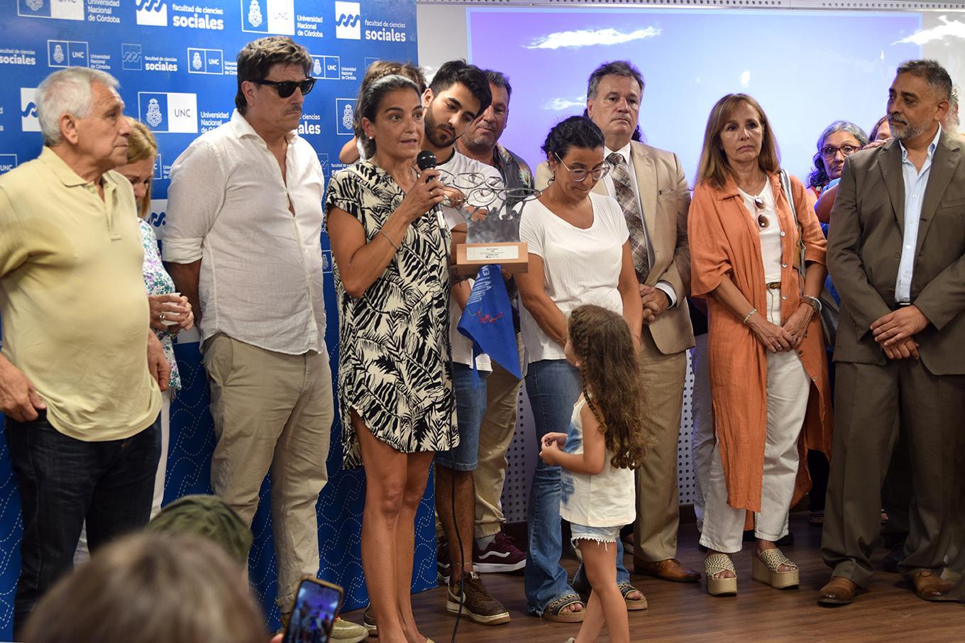 Soledad, rodeada de sus familiares, amigos y acompañada por el nuevo Ministro de Seguridad Juan Pablo Quinteros, visiblemente emocionada, agradeció el reconocimiento de toda la comunidad de Sociales.