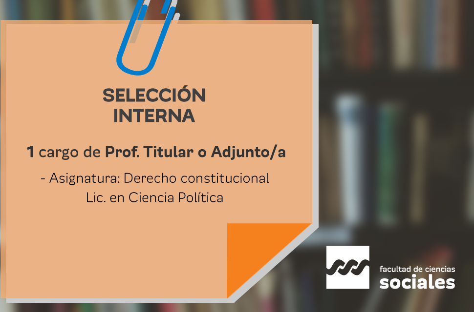 La Facultad de Ciencias Sociales de la UNC llama a selección interna para cubrir como carga anexa a sus cargos de la UNC un (1) cargo de Profesor/a Titular o Adjunto a cargo en la asignatura "Derecho Constitucional" de la carrera de Lic en Ciencia Política.