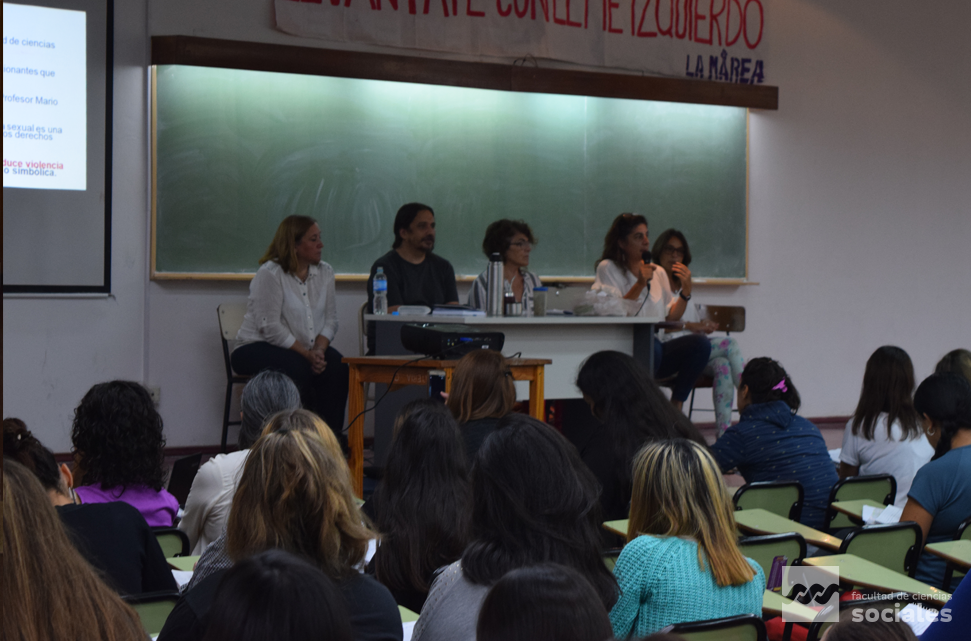 En línea con las políticas de derechos, la importancia del tratamiento en la problemática de género que se da en el ámbito universitario, no escapa a ser uno de los desafíos actuales más importantes. La Secretaria de Extensión y docente de Trabajo Social de la FCS, Alejandra Domínguez, presentó como antecedentes una serie de estadísticas y casos de acoso y abuso a mujeres estudiantes de la Universidad y de la Facultad. Mediante esos datos de investigación y el compromiso institucional, Sociales se pronuncia en favor de trabajar en construir una agenda en conjunto con las ciencias sociales, para avanzar hacia obtención de derechos a una vida libre y sin violencia de género en la universidad.